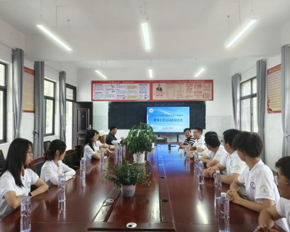 雨后初霁,"抗大 .树梁"志愿者服务队抵达后,与小悟乡林业中学师生举行了座谈,共同参加了暑期社会实践活动的启动仪式,详细讨论了为期22天的科普活动内容、生活安排和安全措施等。林业中学刘董事长对志愿服务队一行的到来表达了热烈欢迎和衷心感谢,表示全力支持本次暑期社会实践活动,志愿者们也依次进行了自我介绍,阐述了对此次支教活动的思考和期望,最后,大家一起合影留念。