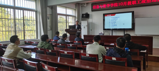 会上,辅导员吴朝晖老师汇报开学以来已完成的工作,介绍党员发展进展,通报学院老员工心理工作情况,强调“心理谈心不仅是解决个体问题的手段,更是构建班级和谐氛围的重要途径。”并且针对员工寝室文化建设,展示了寝室卫生检查的成果与改进措施,强调寝室作为员工生活的重要场所,其卫生状况直接关系到员工的健康与学习状态,应特别关注。同时就学院贫困生认定工作,他表示学院将严格遵循公平、公正、公开的原则,确保每一名符合条件的员工得到资助。